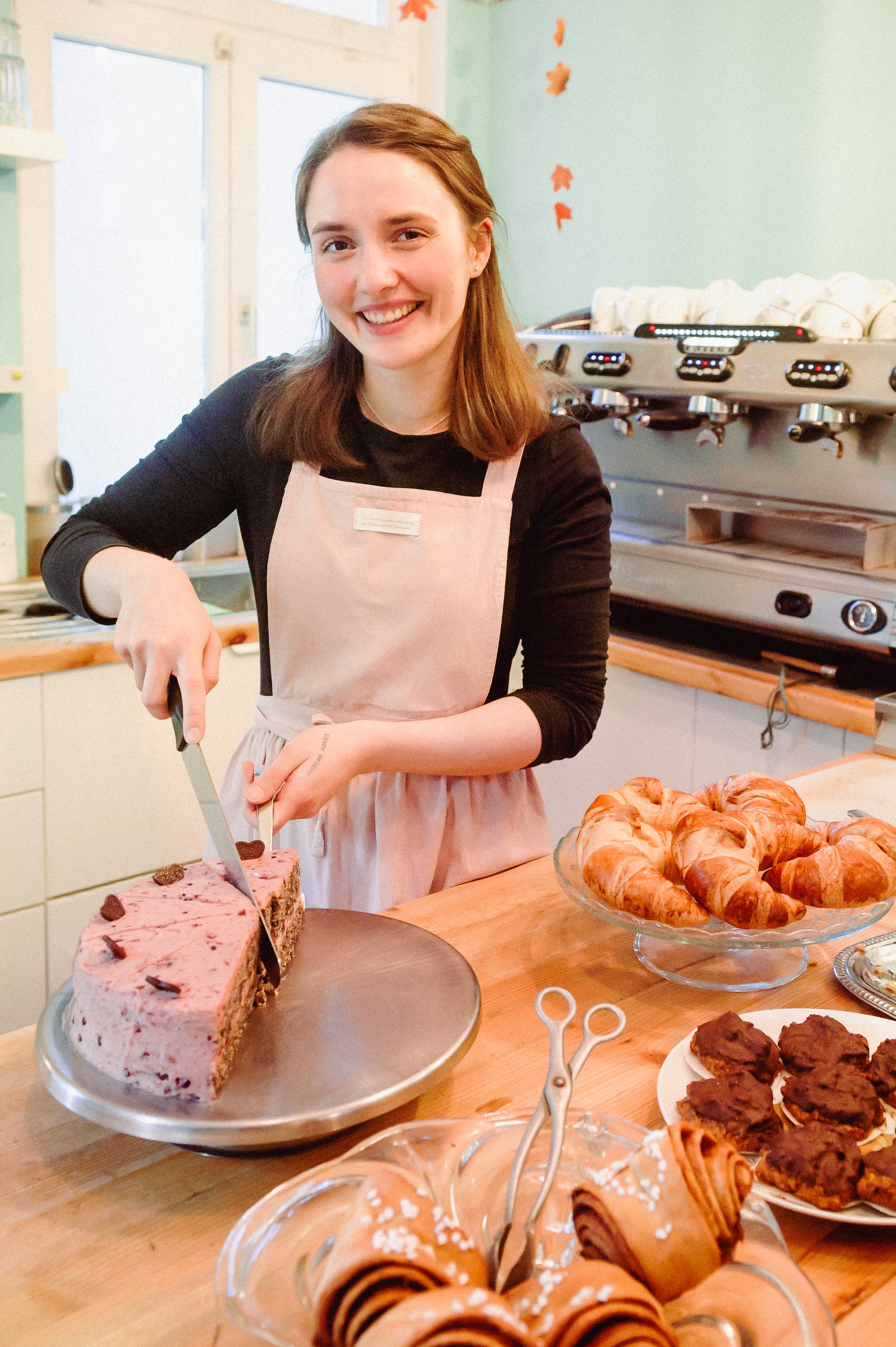 Das Backen war schon immer meine große Leidenschaft, und hier im Café habe ich die Möglichkeit, meine Kreativität und Liebe zum Detail einzubringen. Ich habe eine Mission: Nach und nach möchte ich gesündere, aber genauso leckere Kuchen in unser Sortiment aufnehmen. Es geht darum, innovative Geschmackserlebnisse zu schaffen, ohne auf den Genuss zu verzichten.